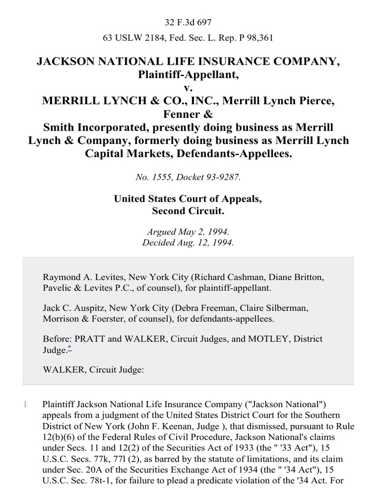 Jackson National Life Insurance Company V Merrill Lynch Co
